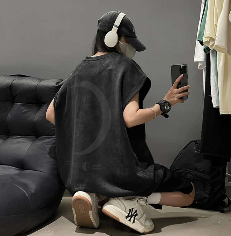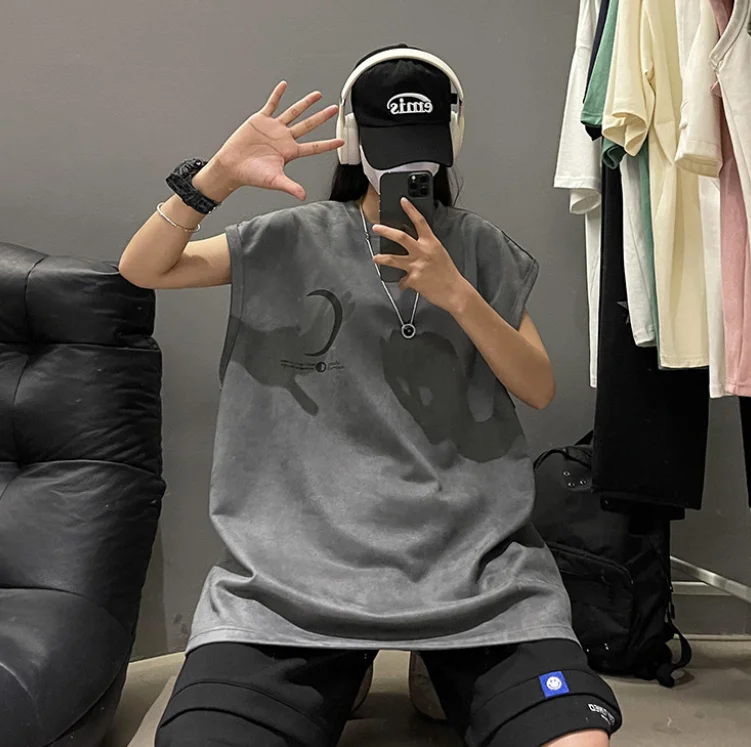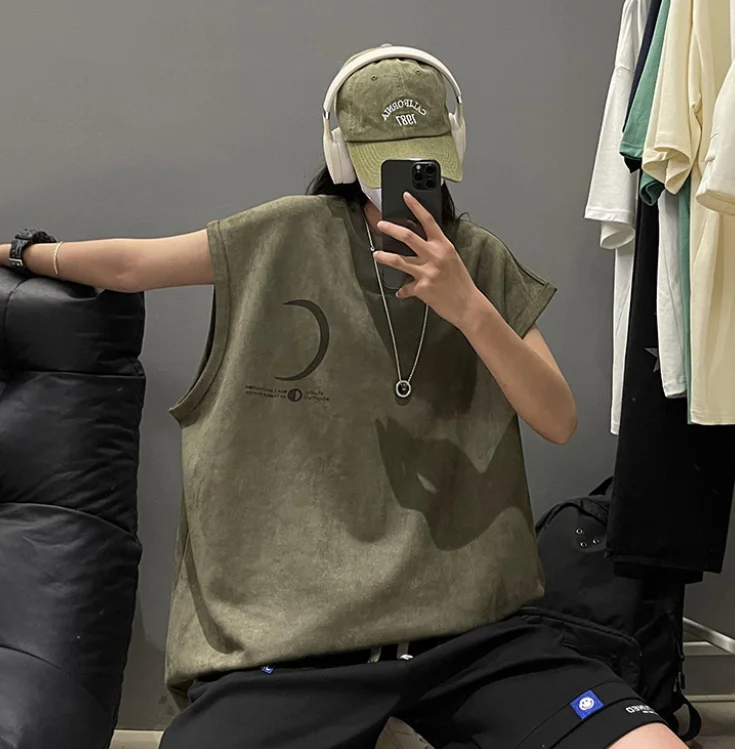Can's shoulder vest loose sports sleeveless T-shirt for men, summer 2025 new men's clothing